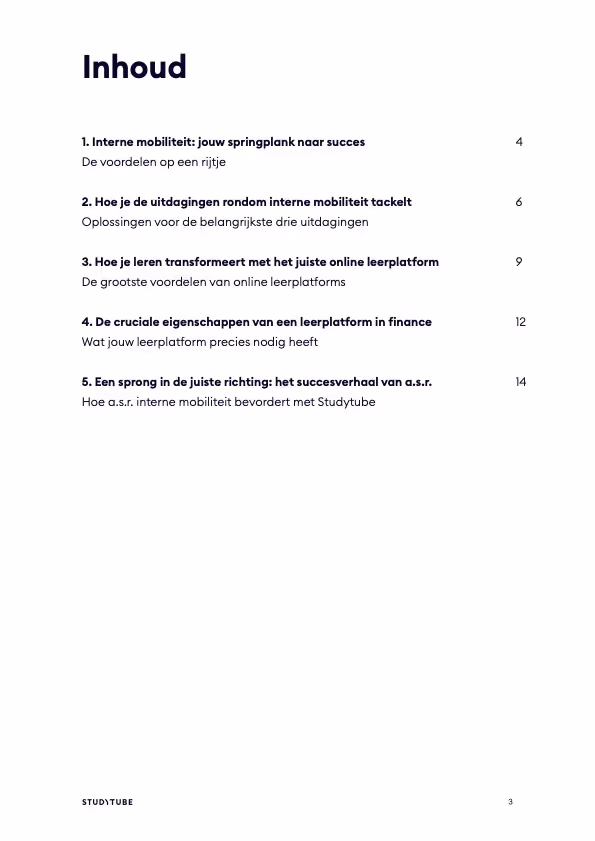 Daarnaast ontdek je hoe een modern online leerplatform interne mobiliteit versnelt met gepersonaliseerde leerpaden, automatische toewijzing, sectorspecifieke content en een sterke leercultuur. Het e-book eindigt met het praktijkvoorbeeld van a.s.r., waarin je ziet hoe een datagedreven en toegankelijk leerplatform mobiliteit écht in beweging zet.